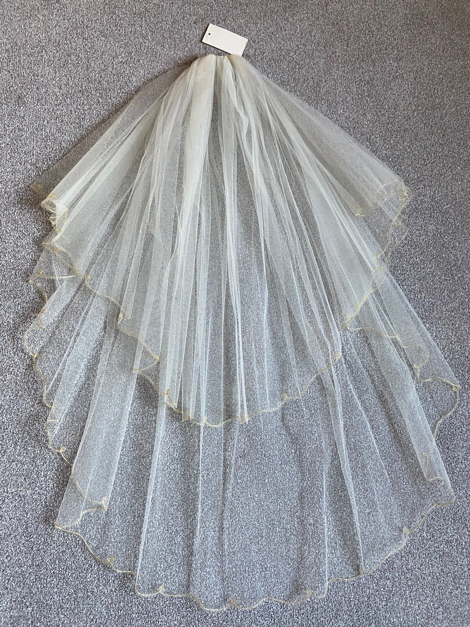 2 tier ivory veil with gold edge2 tier ivory veil with gold edge